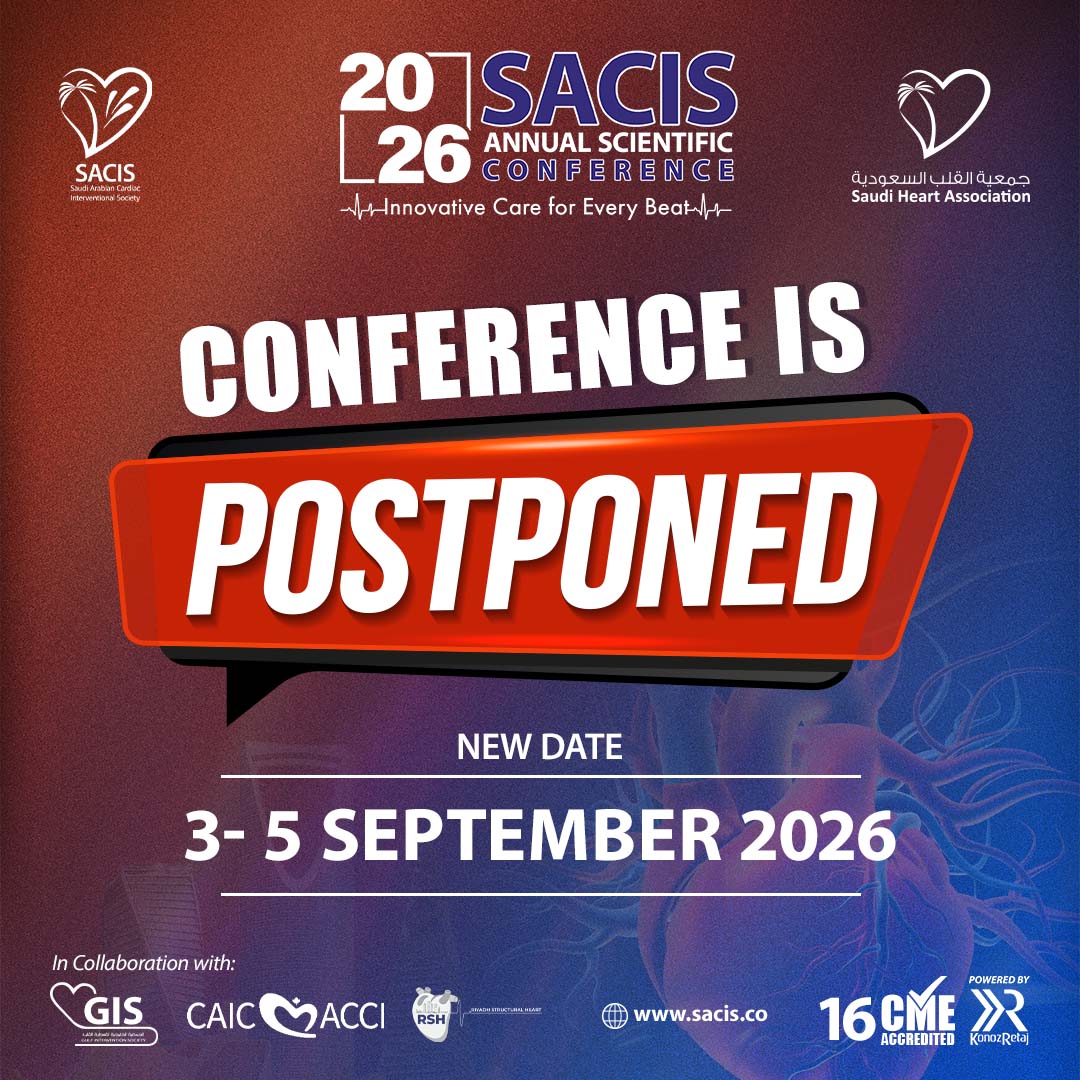 It is with great pleasure that we invite you to join us for the Saudi Arabian Cardiac Interventional Society (SACIS) 2026 Conference, which will take place from 2–4 April 2026 at the Crowne Plaza RDC Hotel & Convention Center, Riyadh, Saudi Arabia.